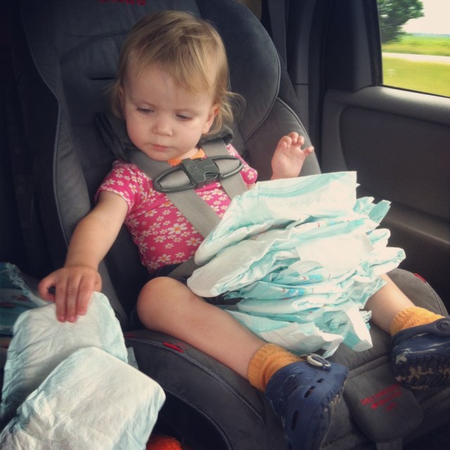 So, out of desperation, I gave her a bag of diapers.