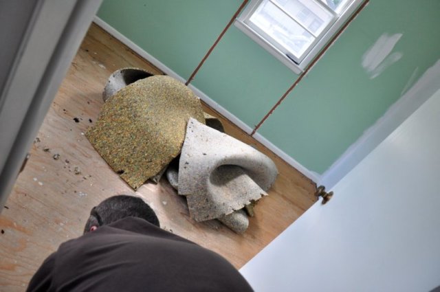 Flooring tear out. The carpet had to go. We are going with some great choices that will brighten the house and be more friendly to my allergy prone self.
