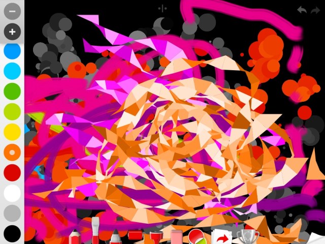 Greta wasn’t all grumps that night, she has been enjoying a new art app I got for my classroom – called Drawing with Carl. There are tons of neat paintbrush shapes to use – including this interesting pixelated one. There are roller brush patterns that turn into various patterns once drawn. Stamps create dots, stars, ink splats, and more. The icon with the red and green circle creates stickers of creatures, dinosaurs, facial features and more. The free version is very good – the upgrade offers more stickers plus a watercolor brush and oil pastels. I highly recommend this app for kids and adults alike. Eric always muses that I seem to like Drawing with Carl more than Greta does.