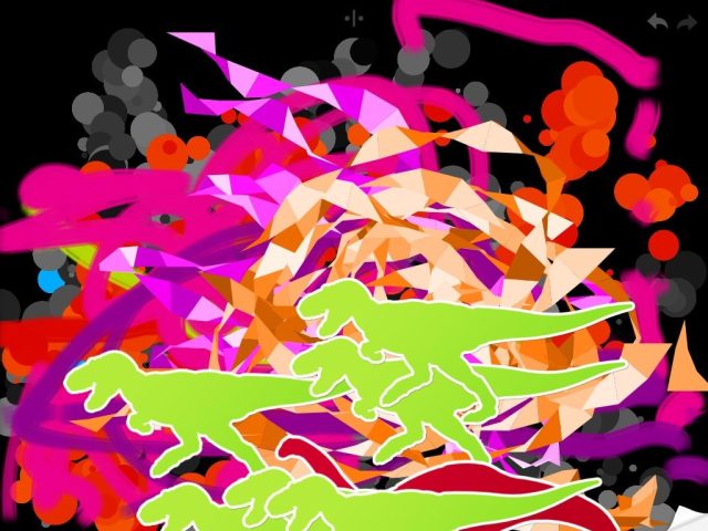 Add dinosaurs is by far her favorite part of this app. The dinosaurs and mammoth roar and make noises when added or moved around the screen. There is a funny little red guy with a big mouth – he has a neat feature too, but I will let you figure that one out for yourself.