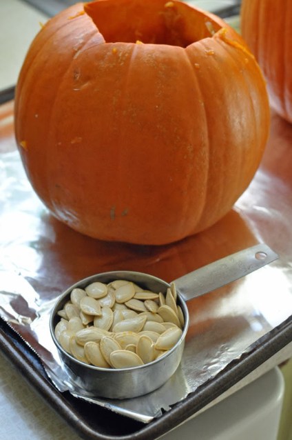 I had a couple small pumpkins that I will be using to roast, so I saved the seeds to add into the granola. Just simply put the seeds into a colander and rinse well. Then, add the raw seeds to the granola before baking. I love making pumpkin seeds, but cannot bring myself to eat them by themselves – I find they are much better when added to other recipes.