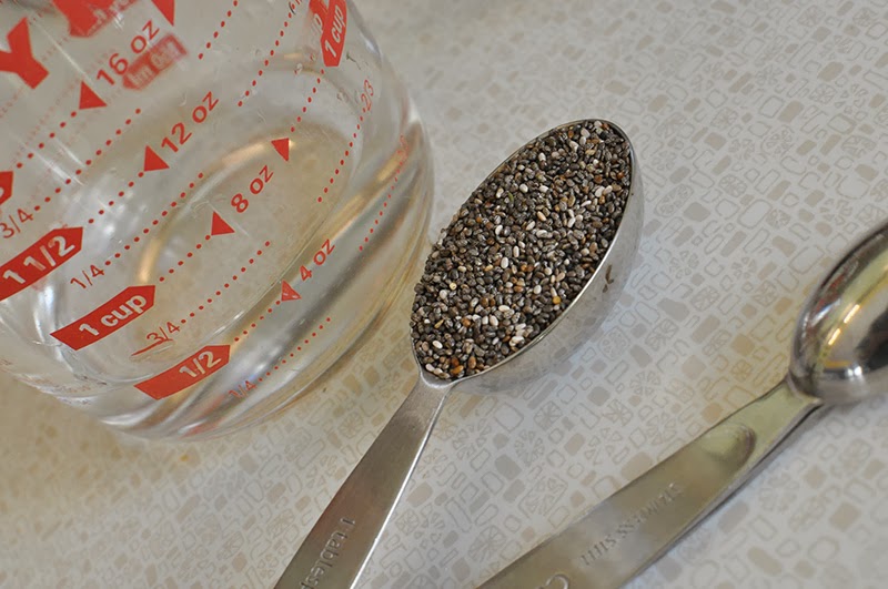 1. In a small bowl combine: 1 cup water and 2 tablespoons chia seeds. Allow to soak for 1-2 hours before using.