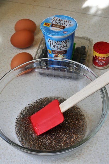 1. At least 2 hours prior to baking, combine 1/2 cup water with 1 tablespoon chia seeds. Allow to stand at room temperature. If preparing the day before, cover and place in refrigerator.