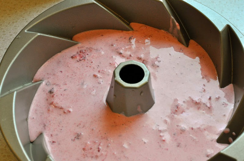 Pour into a pretty cake ring pan and freeze overnight or till solid.