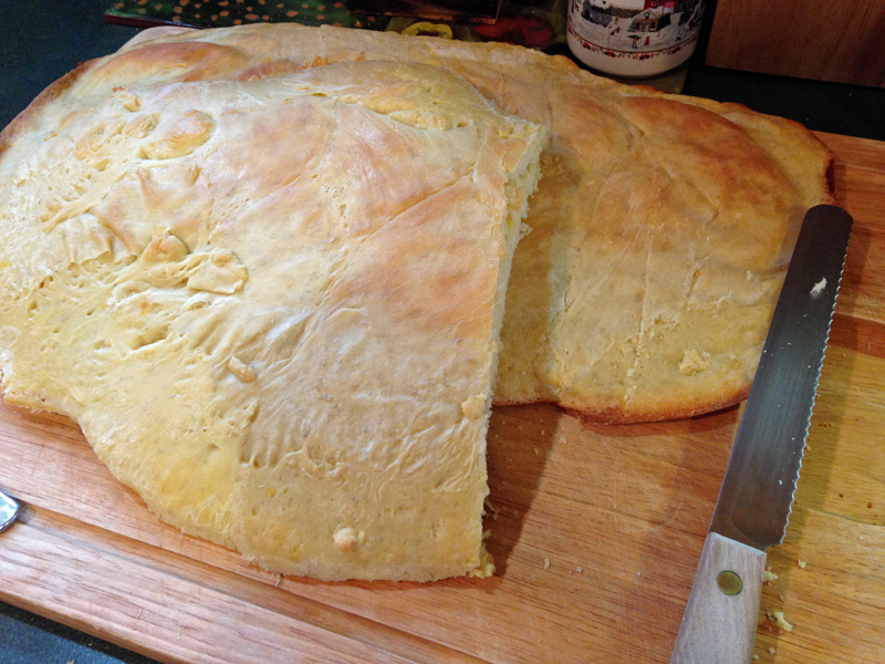 For the first time I can recall, my friends, my dough dropped. The perils of baking yeast bread around young children and babies is the forgotten kitchen timer. I either did not set mine, did not hear mine, or the kitchen goblins who leave piles of dirty dishes in sinks turned it off for me. In any case, my dough rose and dropped before I could get it into the oven to bake. However, since I was being watched by little eyes, rather than dumping the entire doughy mess into the trash, I pressed on and baked it anyway. I am finally listening to my young daughter’s toddler voice belting out the chorus to her favorite wintery animated movie about sisters and snowmen and letting it go. The outcome was a deliciously chewy, still tastes like Challah, but looks more like a focaccia loaf of bread. So, my lesson out of all of this, enjoy the process and move on when it doesn’t work out. I promise to post more of my flops, for the Internet is far to full of picture-perfect images of meals that look as if they only could ever be made in the top restaurants by the top chefs.