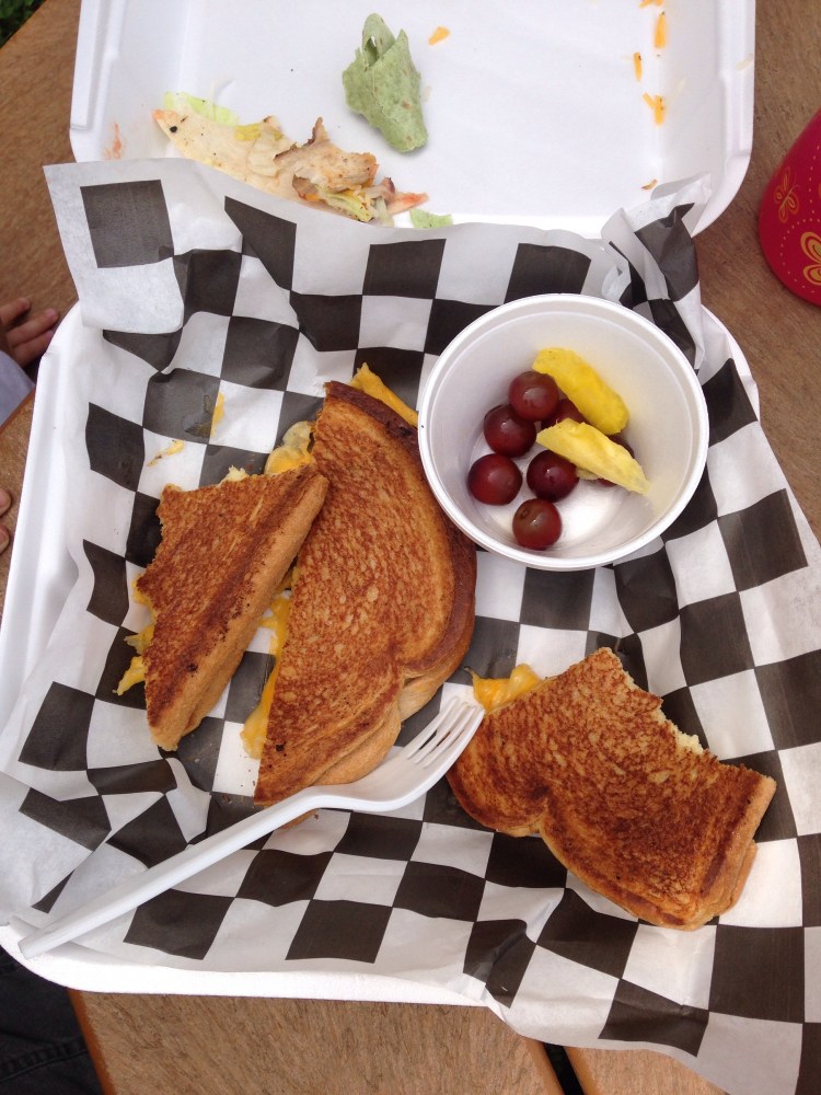 We chose to dine al fresco in a small picnic area directly across the street from Saddles. This way, the kids could stand and dance while eating. They both get antsy after sitting on the bike for a while.