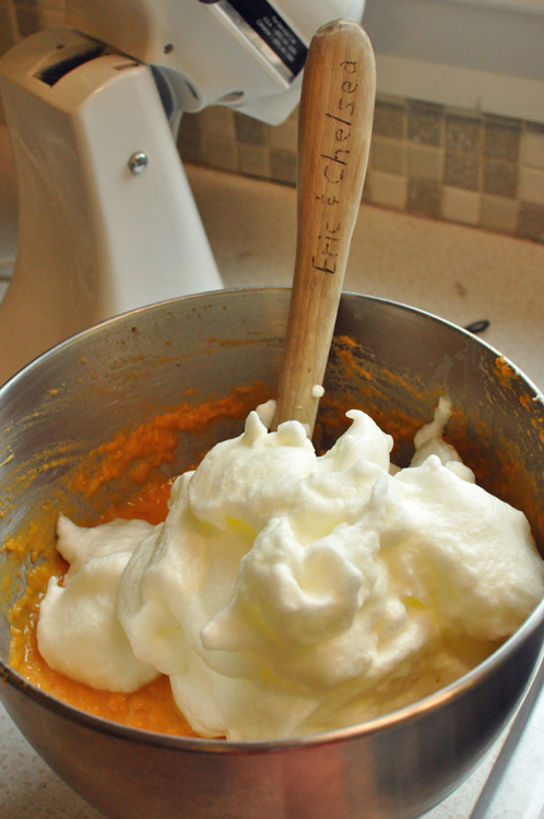 Just before baking, whip egg whites until soft peaks form.  Fold into sweet potato mixture.