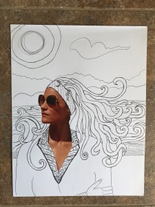 I started this Mona Lisa homage years ago, as a magazine face collaged on to a black marker drawing. At that time, I was sorely missing the coastal parts of North Carolina, which had been our home state for eight years.