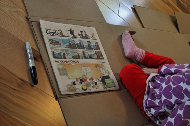 Greta and Eric sitting at the set table, eagerly awaiting rolls, eggs, bacon, and fruit. It was a beautiful sunny and cold morning for a family brunch.