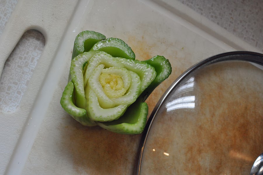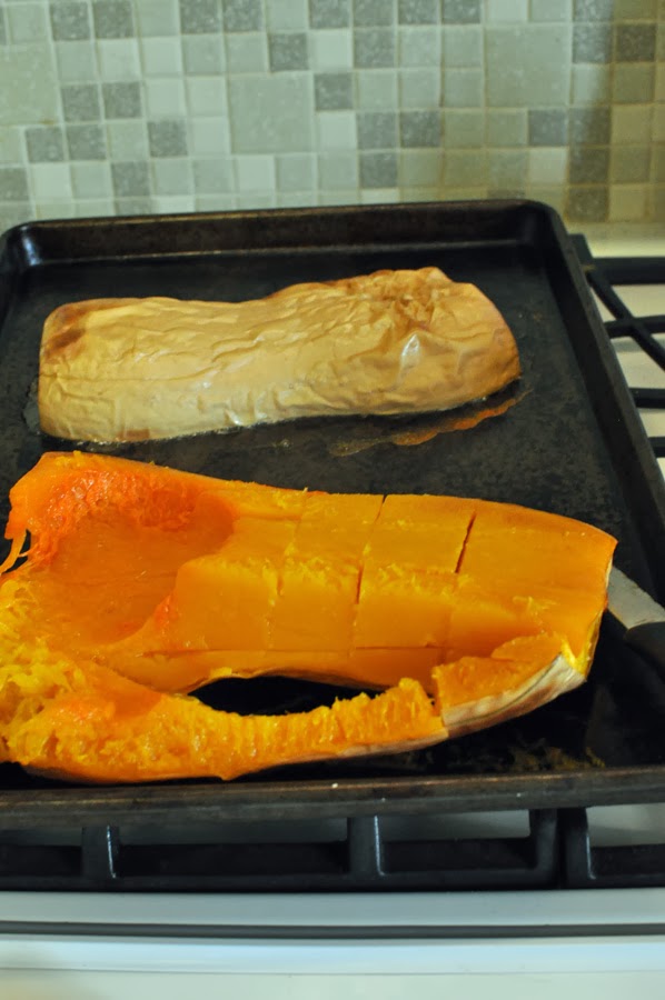 One sliced and peeled golden acorn squash was substituted for the chicken.