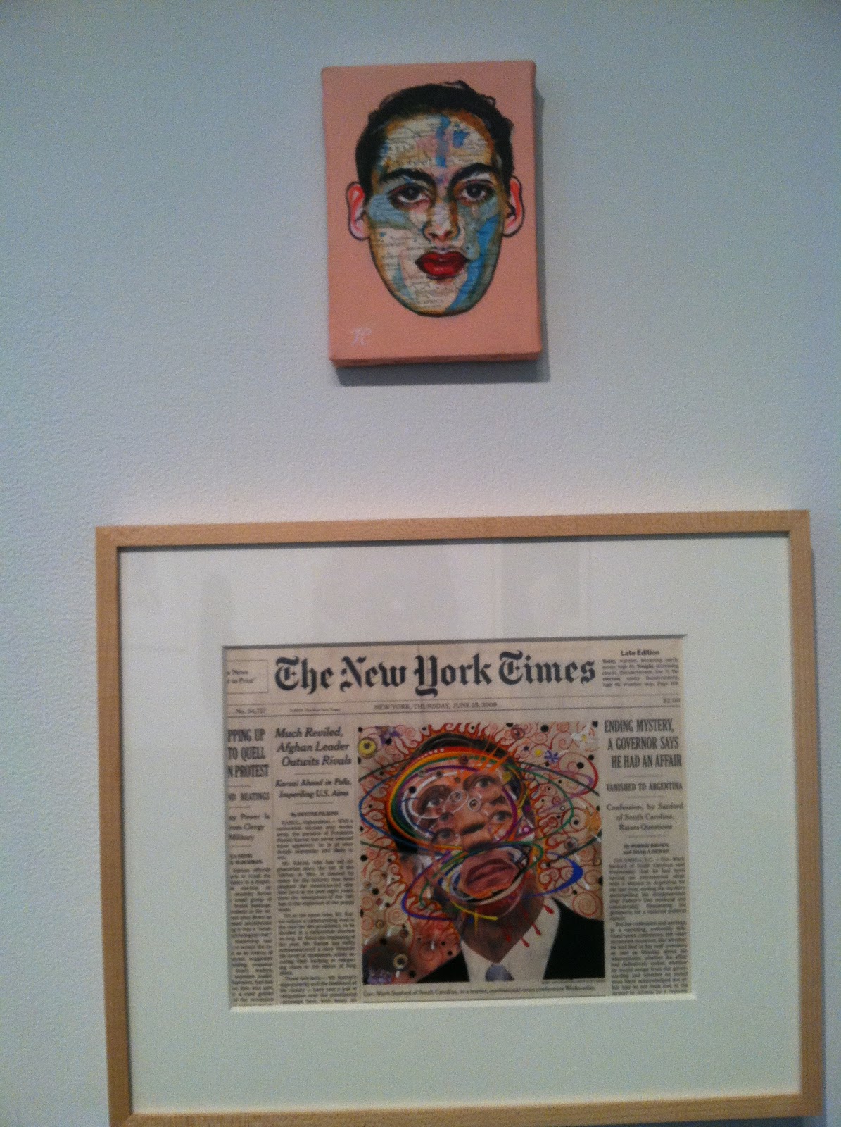 Anything collage, especially when it involves text like the map, above, and the newspaper below, interests me. I used these two artworks as inspiration for my self-portrait, the most.