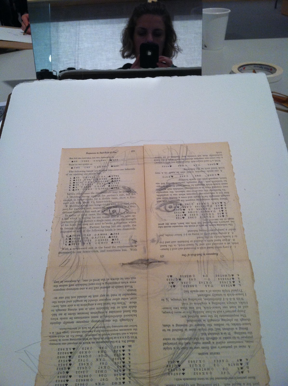 I mapped out my drawing in pencil over 4 pages from an old bridge book.