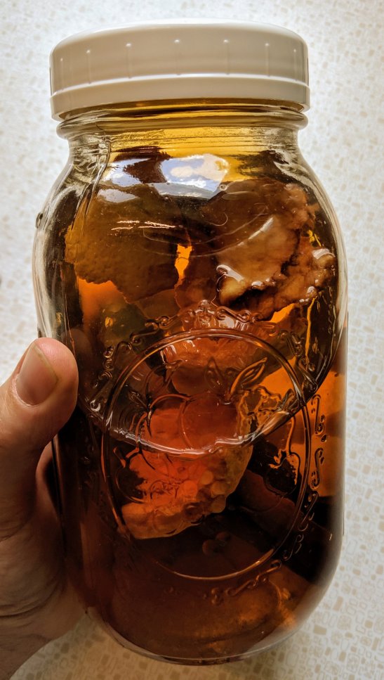 Then, I let the vinegar solution sit for two weeks in a sunny spot in my kitchen. It turned this lovely amber color after just a couple of days. I let is soak until the cinnamon and orange smell were noticeable over the vinegar smell. When it was ready to use, I filled a spray bottle with half water, half vinegar solution. I then added a few drops of Dr. Bronner’s Pure-Castille citrus soap. I use it on my counter tops, sink, cabinets, bathroom, table — anything needing a wipe down.