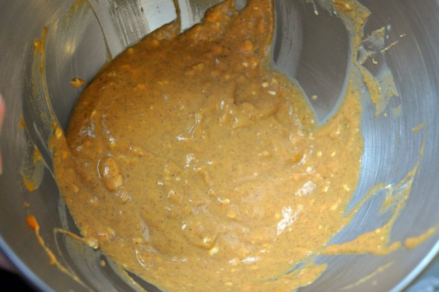 When I am ready to bake banana bread, I simply defrost them in the microwave and then mash them in a glass measuring cup. For this recipe, I combined mashed banana and pumpkin puree to create the 1-1/2 cups needed.