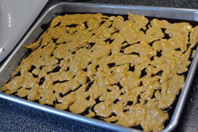 2. Combine 2 eggs, 1-1/2 cups mashed banana and pumpkin puree, 3/8 cups molasses, 1 cup sugar, 1/2 oil or melted butter. Stir just until moistened. Pour batter into prepared loaf pan.