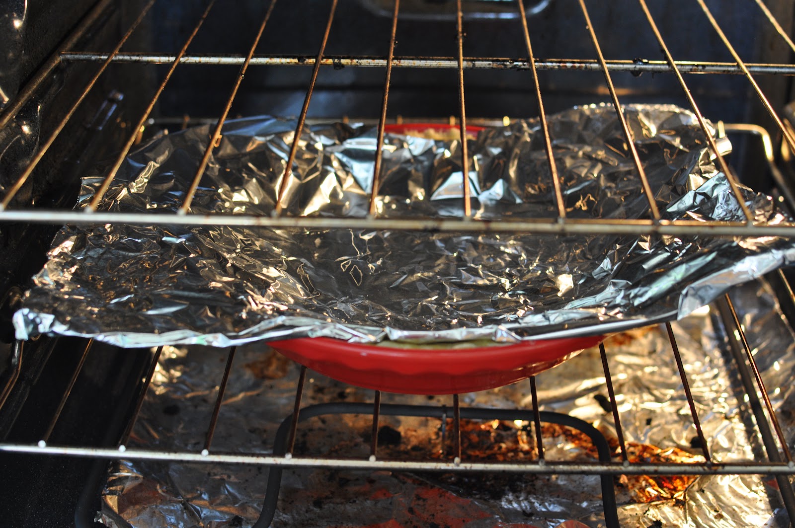 Line with double thickness of aluminum foil. Bake in a 450 degree oven for 8 minutes.