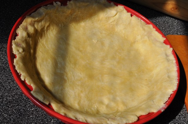 To transfer pastry, wrap dough around a rolling pin. Unroll into a 9-inch pie plate. Do not stretch the dough, as this will cause shrinking. Trim excess dough and fold over. Do not prick dough.