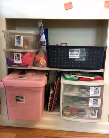 I added picture labels to make it even easier for my non-reader, something I have all over my own classroom. Now it really feels like a corner of my classroom at home.